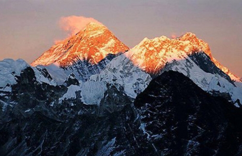 The snow-capped summit peak pierces the eastern sky in Nepal. It stands like a sentinel,...
